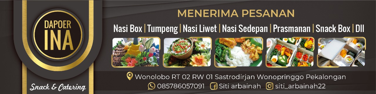 Catering dengan berbagai menu tradisional dan internasional, berupa menu prasmanan, nasi box, tampahan, Snack box, kue hantaran dan lain lain untuk berbagai acara, resepsi, meeting dan lain lain, untuk area Pekalongan dan sekitarnya